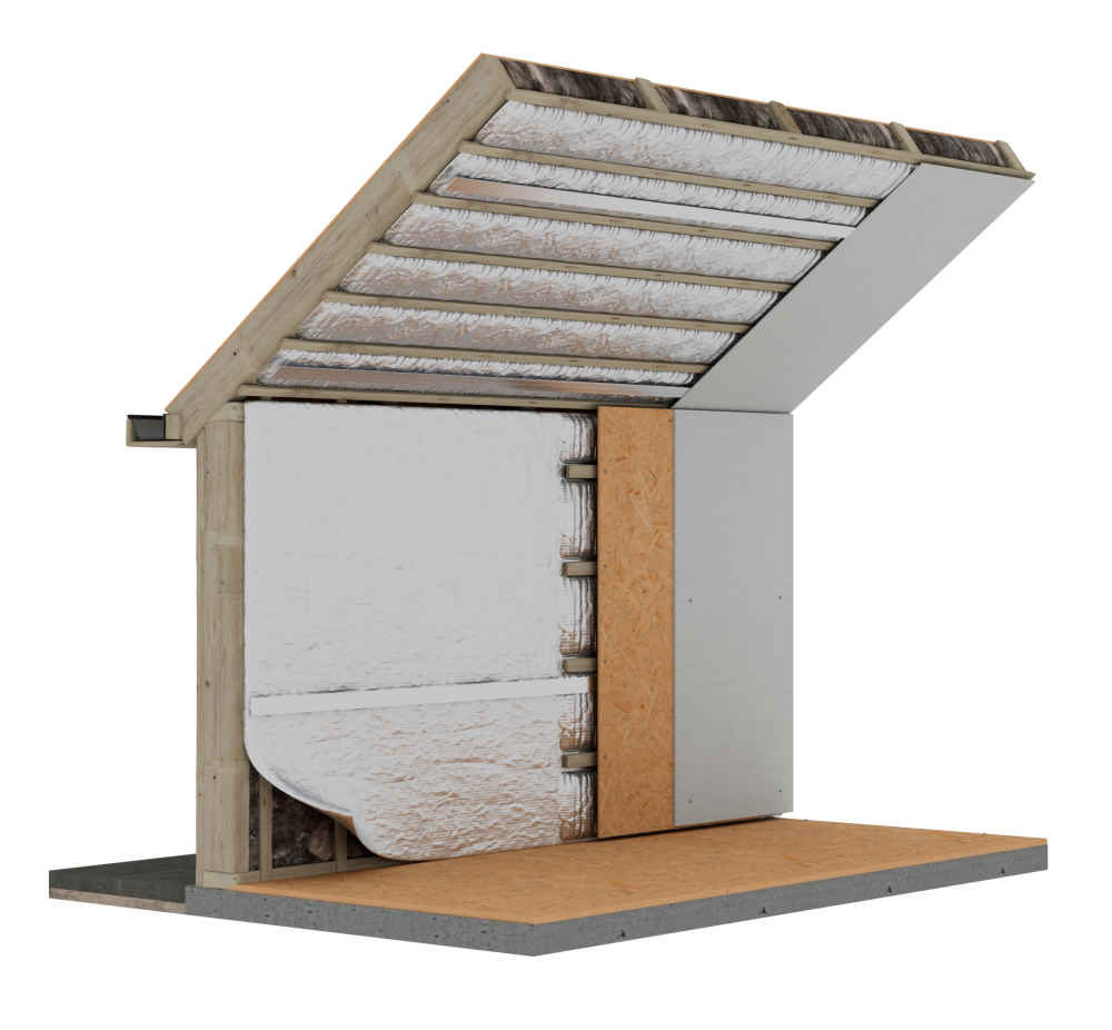 De Rol dient horizontaal te worden aangebracht met een minimale overlap van 50mm. De overlappen over de gehele lengte aftapen met O2stop aluminium tape voor een lucht- en waterdichte afwerking. Het materiaal dient bevestigd te worden met rvs nieten van minimaal 14mm. Voor een goede reflectie wordt geadviseerd een luchtspouw van 20mm aan te houden.