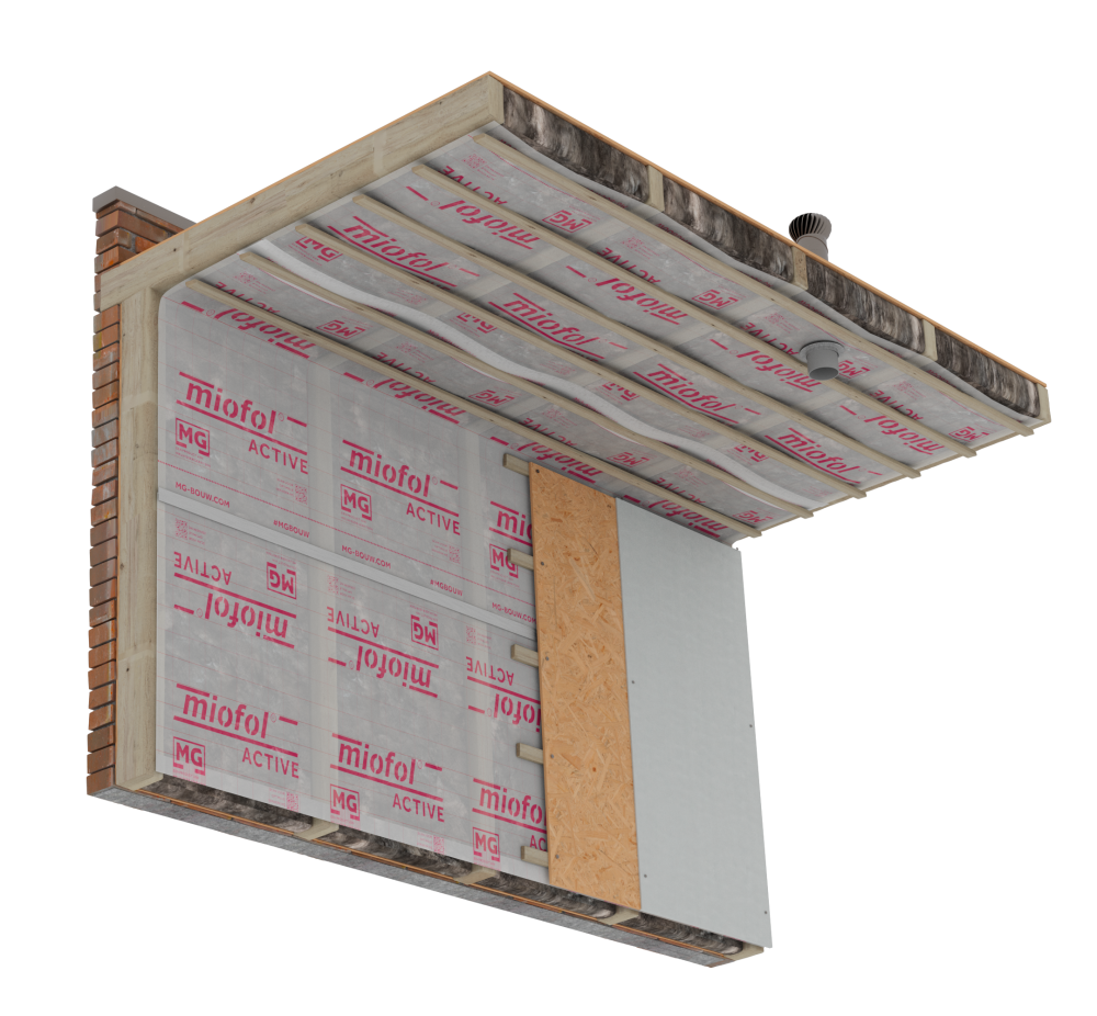 Een zelfrugulerend membraan ( miofol active ) is bij uitstek geschikt om toe te passen bij zeer dikke isolatiepaketten en als dampremmer onder een plat dak met een niet dampdoorlatende dakbedekking!