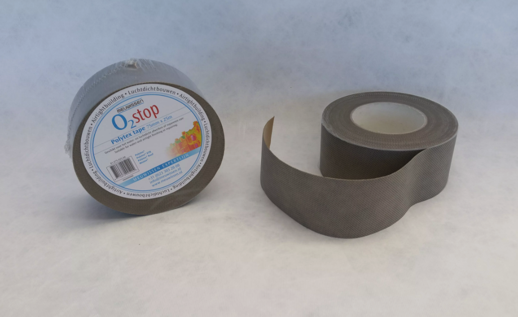 O2stop Polytex Tape is een damp-open enkelzijdig klevende tape gebaseerd op de polytex roof en voorzien van een zeer goed hechtende acrylaat lijmlaag. Hierdoor is de tape ook geschikt voor het plakken van de membranen op hout-constructies.
